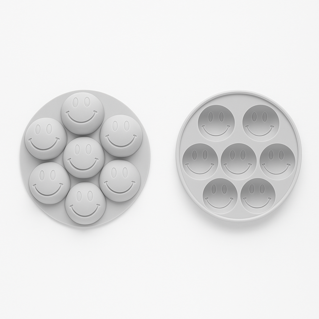 Formă din silicon cu 7 fețe zâmbitoare, ideală pentru prăjituri, brioșe, jeleuri sau cuburi haioase de gheață.