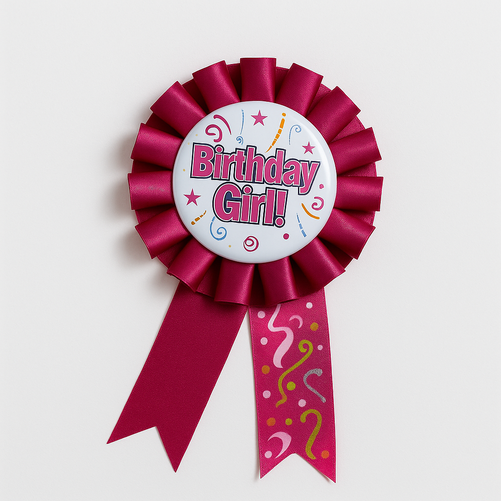 Insignă aniversară visinie „Birthday Girl” – accesoriul perfect pentru sărbătoritul zilei.