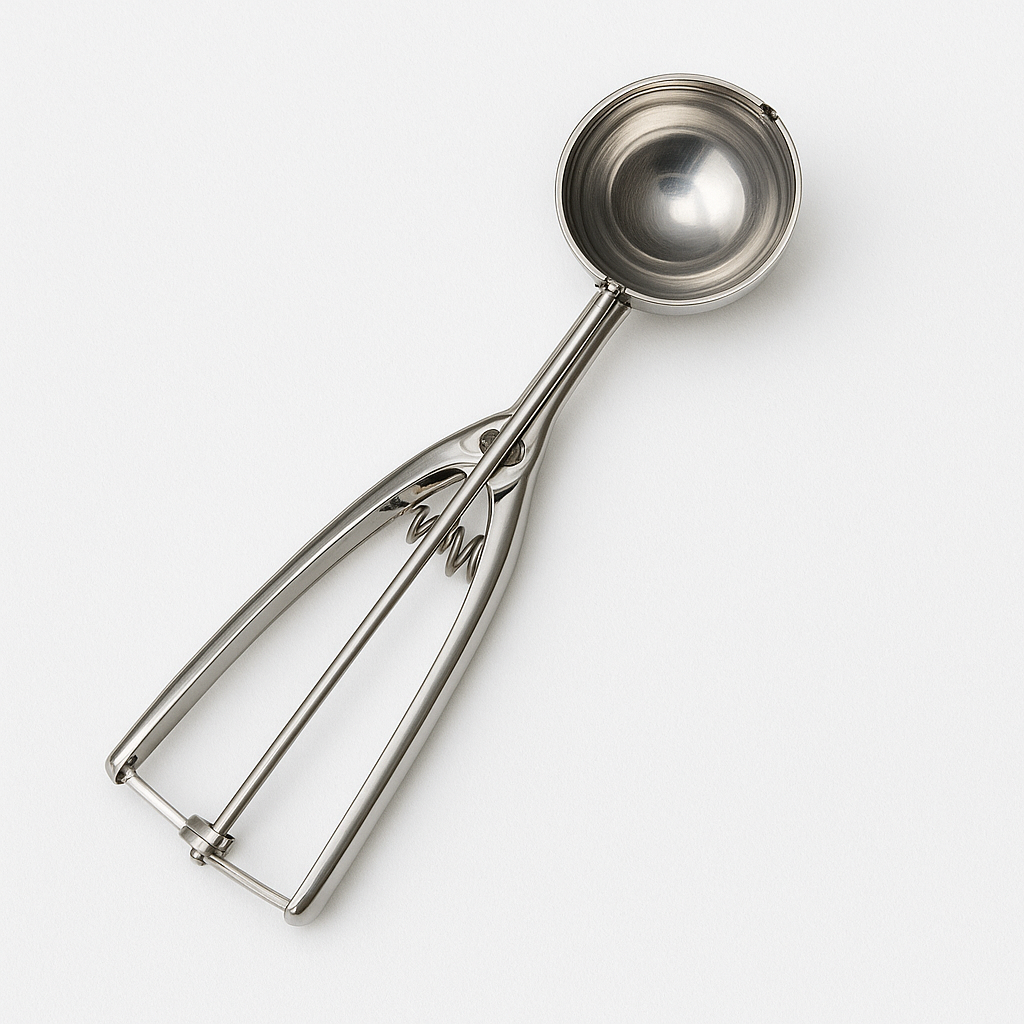 Lingură din inox cu declanșator, ideală pentru porționarea înghețatei, piureului sau aluatului. Rezistenta, practica si usor de curatat.